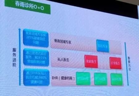 春雨医生为用户提供进阶服务:首先,通过春雨医生EHR系统(健康档案),实现人机交互,通过移动端产品为用户解决80%的健康信息。其次,家庭医生、诊室医生为用户提供私人医生服务,通过管理式医疗服务解决15%常规疾病问题。再次,垂直领域的知名专家将帮助用户解决5%的疑难杂症问题。